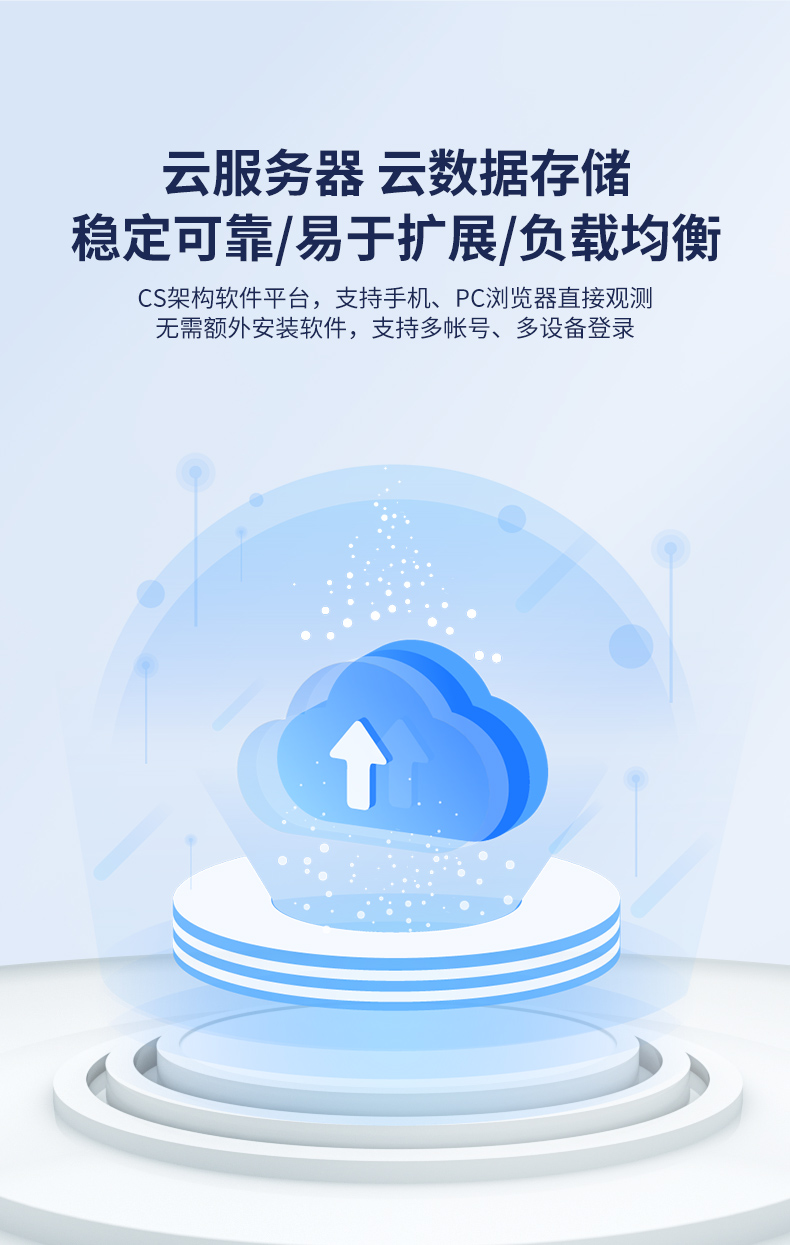1.CS架構(gòu)軟件平臺(tái),支持手機(jī)、PC瀏覽器直接觀測(cè)、無(wú)需額外安裝軟件。
